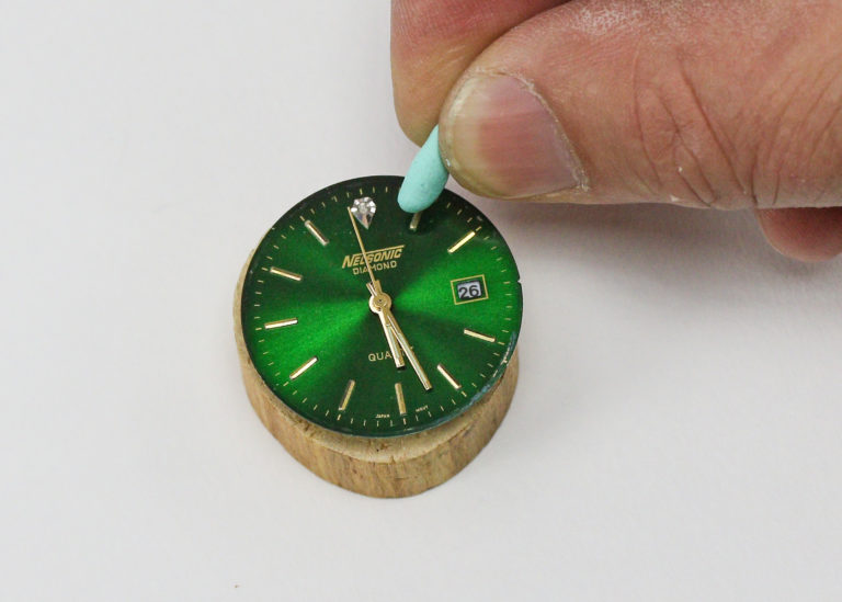 • Удалите масло и отпечатки пальцев с деталей часов.