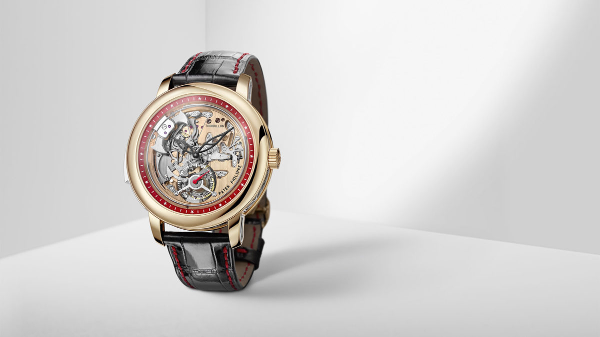 Для праздника компания Patek Philippe представляет специальный репитер с минутным повторителем Tourbillon Singapore 2019 Ref. 5303R-010. Эти 12-часовые лимитированные часы непременно будут поляризованы своим дизайном. Интересно, что, несмотря на ажурный циферблат, производитель предпочел перевернуть корпус турбийона лицом вперед. Таким образом, можно увидеть только заднюю часть корпуса. Мосты в механизме были позолочены из розового золота 5N, что отличает их от стальных компонентов. Между тем, корпус из розового золота имеет изогнутый и полированный безель, а также интарсии из белого золота; они изображают арабески и решетчатые изделия на боковых сторонах корпуса. Горка для минутного повторителя также выполнена из белого золота. Воздавая должное Сингапуру, сапфировое стекло с красным лаком, украшенное белыми звездами, напоминающими флаг города-государства, смотрится неотразимо. Чтобы завершить образ, блестящий черный ремешок из кожи аллигатора украшен красной строчкой. С технической точки зрения часы явно являются мощным двигателем. Перезвоны минутного ретранслятора четко перекликаются с высочайшей музыкальностью, характерной для Patek Philippe. Эстетика дизайна, однако, несомненно, разделит мнения. Красный часовой круг с белыми звездами; архитектура без набора номера; мосты из розового золота; двухцветные штрихи на корпусе; открытый турбийон, обращенный назад; гравированная надпись «ТУРБИЛЛОН» на мостике - к этому нужно привыкнуть.