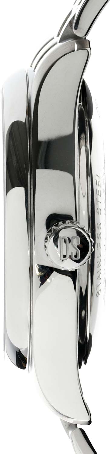 Классический дизайн сделает образ безупречным, придаст ему стиля и утонченности. Автоматические мужские часы DS-8 имеют запас хода на 42 часа и работают на швейцарском механизме ETA 2825-2. Фактурный циферблат выполнен по технологии Sunray (солнечные лучи). Заостренные прямоугольные стрелки в стиле Baton. Секундная стрелка вынесена на отдельный циферблат. Накладные метки в виде штрихов. Метки и стрелки с люминесцентным покрытием, которое светится в темноте после непродолжительной зарядки на свету. Окошко даты находится в положении 6 часов. Рифленая заводная головка. Прозрачная задняя крышка. Стальной браслет с раскладывающейся застежкой. Водонепроницаемость до 100 м. Диаметр 40 мм, толщина 12,45 мм, ширина ремешка 21 мм.