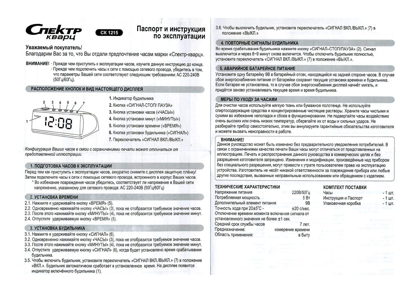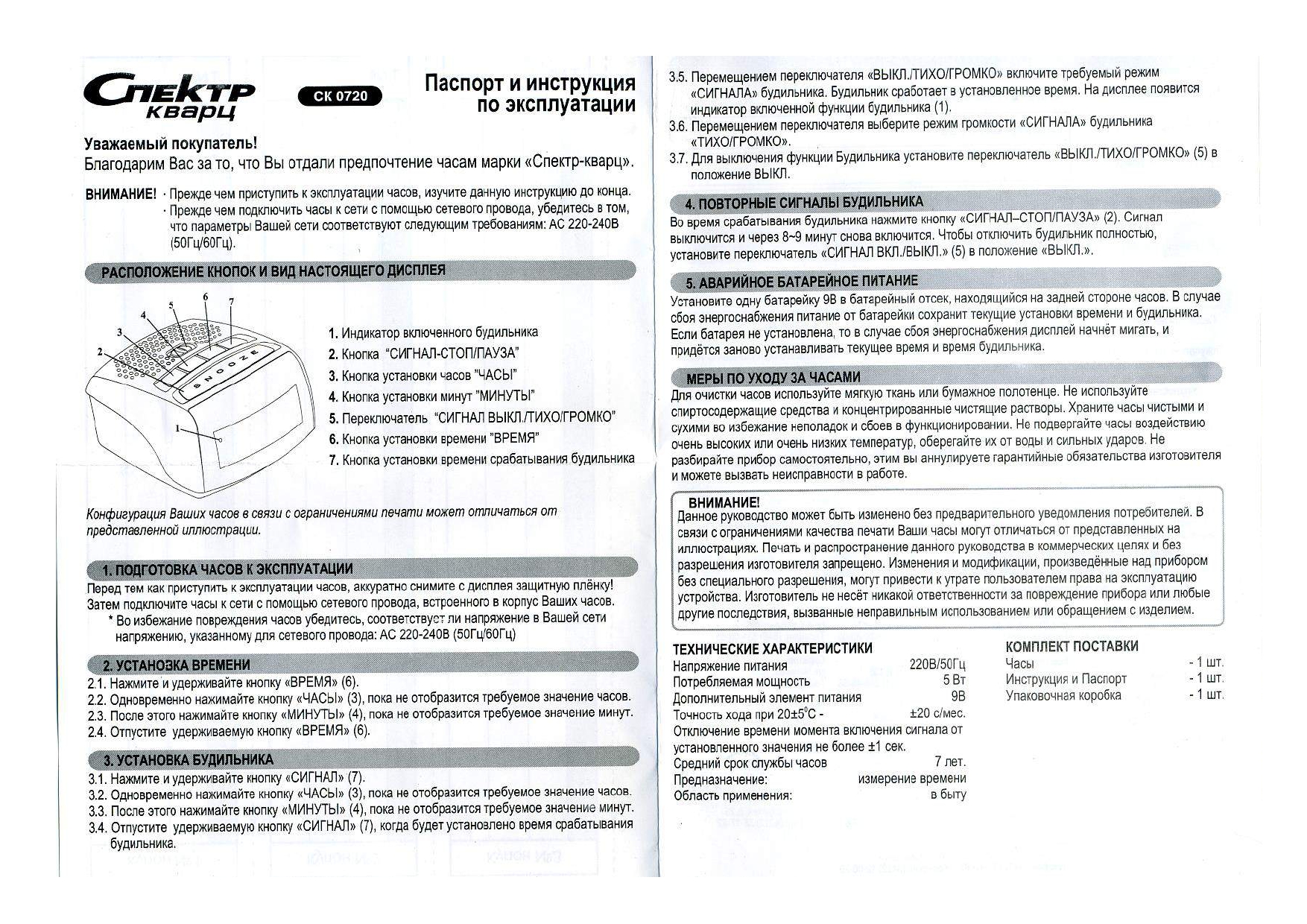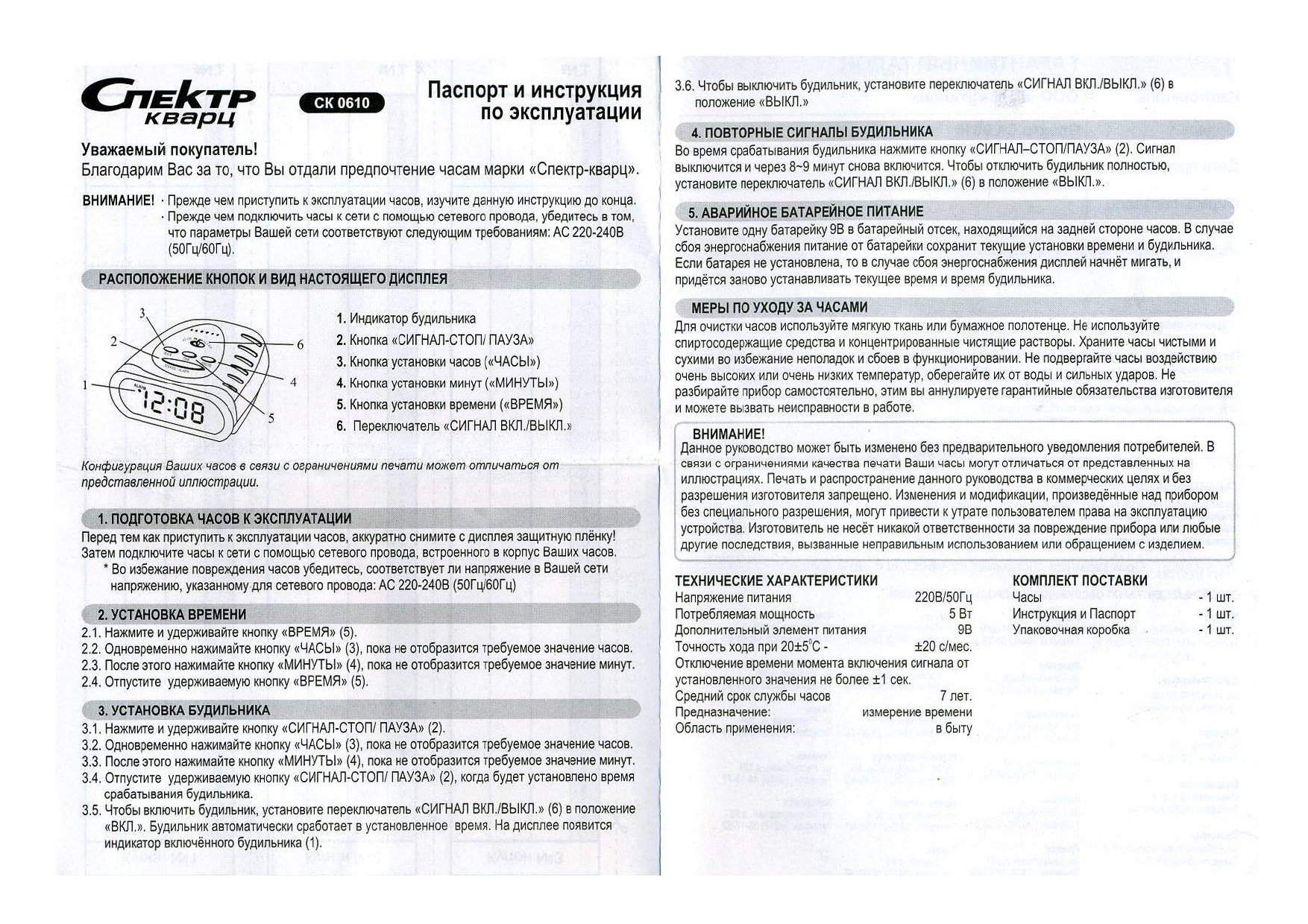 Ниже приведены самые распространенные инструкции к будильникам СПЕКТР: СК 1811, СК0610, СК0090, СК0720, СК0918, СК1215, СК1817, СК1819